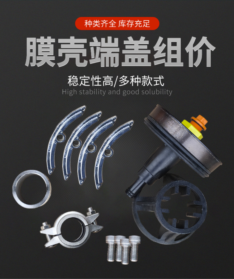 PYFRP玻璃钢膜壳端盖整套,包括固定螺栓,O型密封圈,不锈钢挡圈,紧固螺母,适配器,支承板,O型密封圈,密封板,推力环。